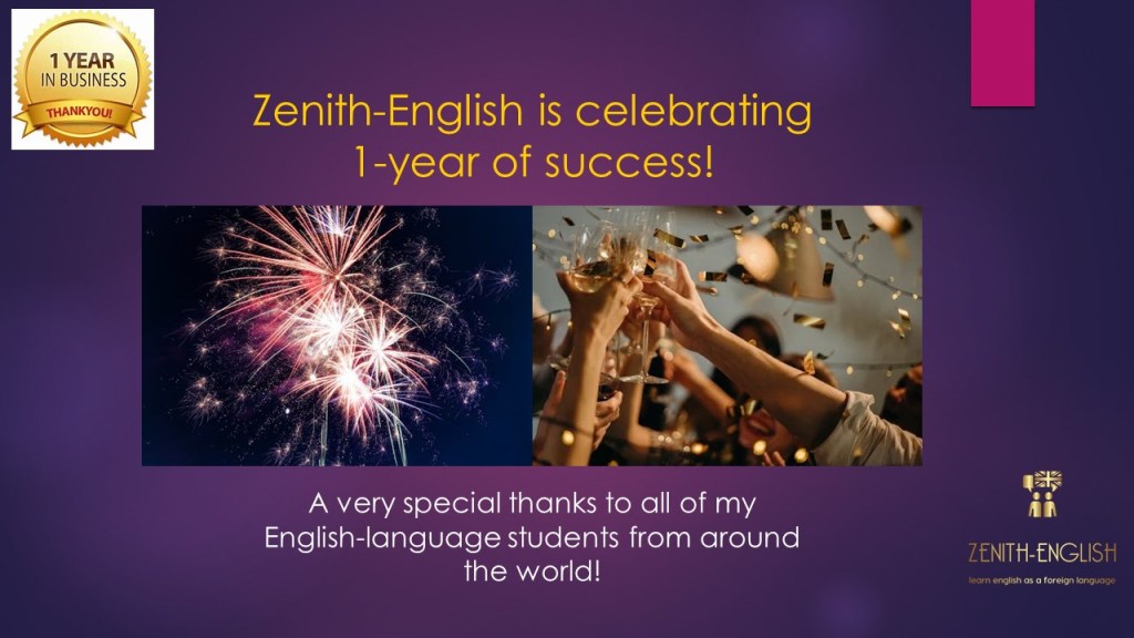 Today is Zenith-English Day! Posted byKelvin Clarke05/10/202002/10/2020Posted inSite UpdatesTags:learnenglishonline, tefl, tesol, zenithenglish Share this: Click to share on X (Opens in new window) X Click to share on Facebook (Opens in new window) Facebook Like Loading... Published by Kelvin Clarke Founder and owner of Zenith-English: www.zenith-english.com Learn English as a foreign language. View more posts